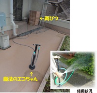 上で紹介した「魔法のエコちゃん」を雨水タンク「雨櫃(アメビツ)」の散水用ポンプとして屋上緑化などに活用していらっしゃるほか、大型貯水タンク「ミニダム」に雨水を浄水するポンプをセットして